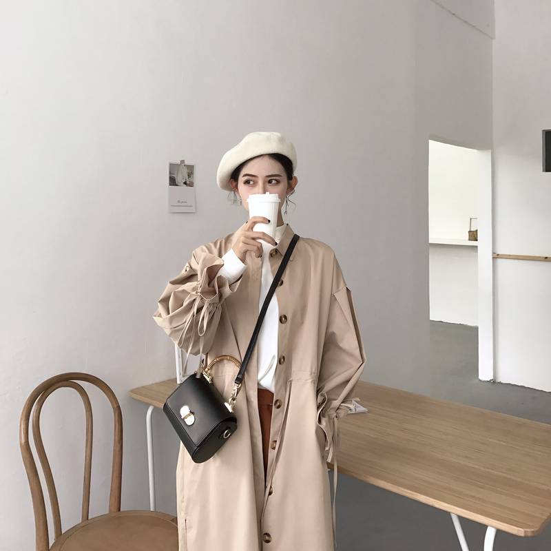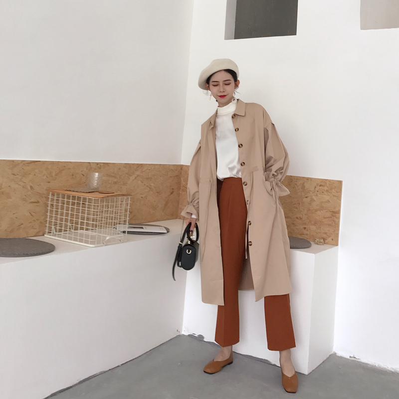 / 小香風新款韓版秋裝百搭寬松顯瘦復古氣質長款純色長袖風衣外套女