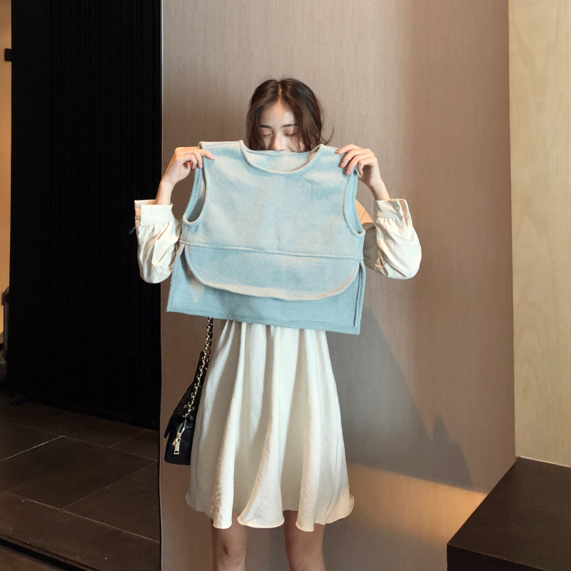 / 秋裝女2018新款套裝時尚呢子馬甲女+高腰中長款連衣裙網紅兩件套