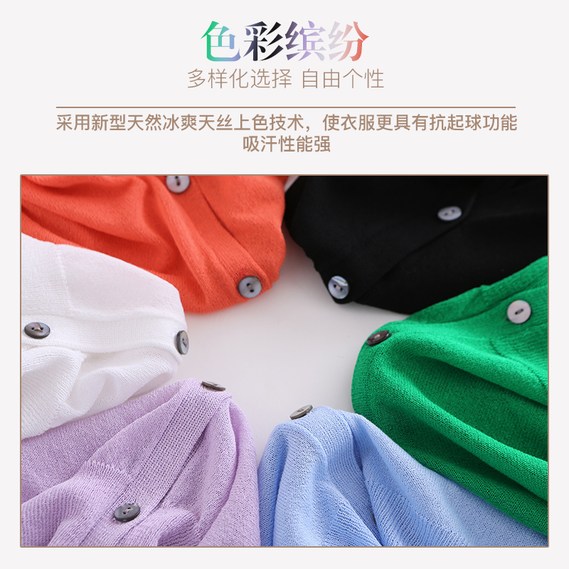 / 冰絲針織衫女開衫夏季短款外搭防曬衣女七分袖薄款針織外套女披肩