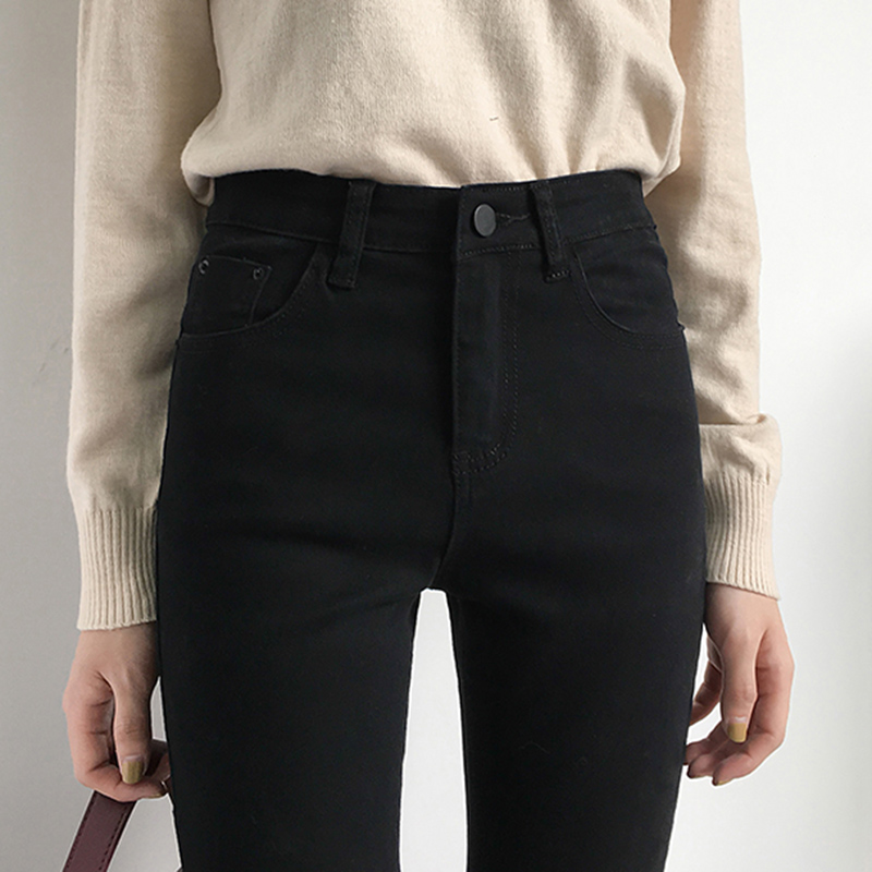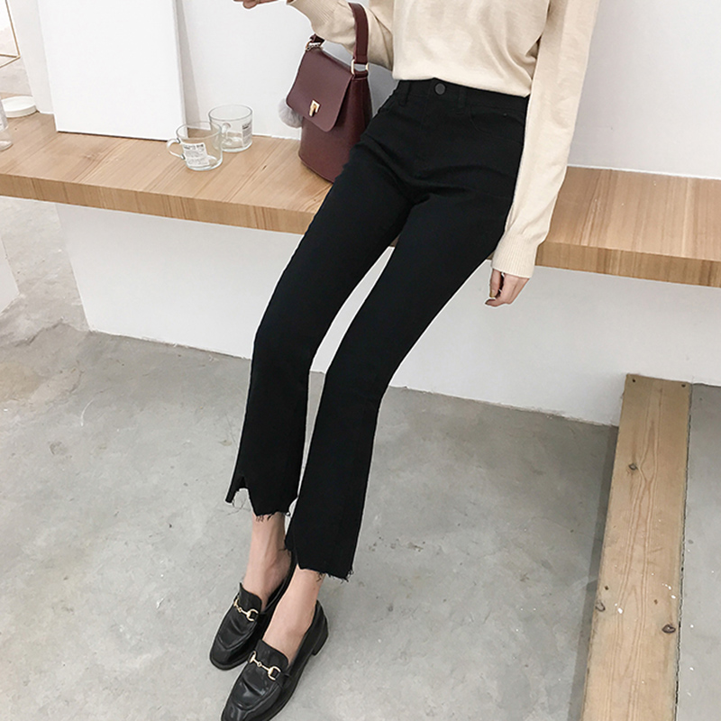 / 毛邊開叉微喇叭牛仔褲女早秋新款韓版女裝修身高腰黑色小腳鉛筆褲