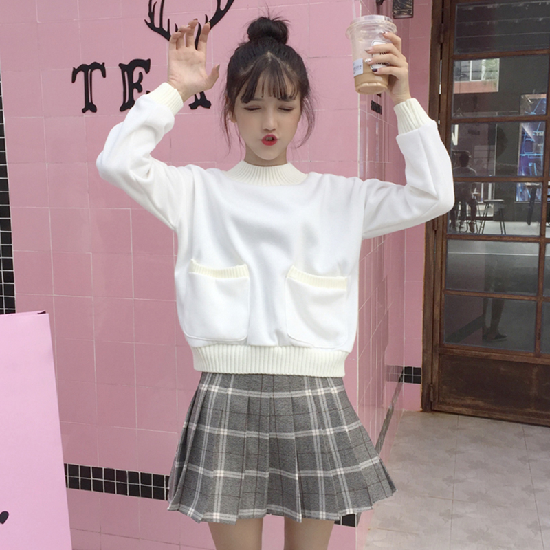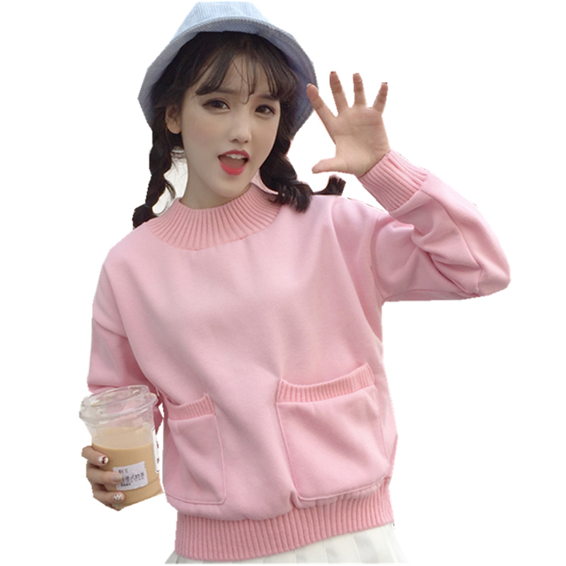 秋冬衛衣女2018新款少女寬松雙口袋加厚套頭長袖上衣女裝白色外套