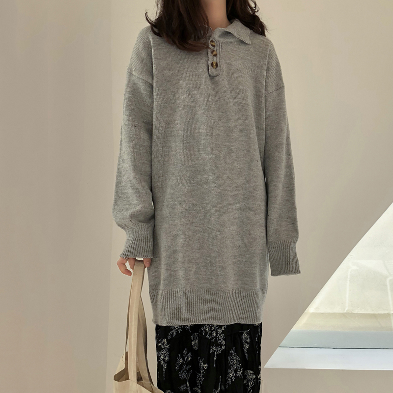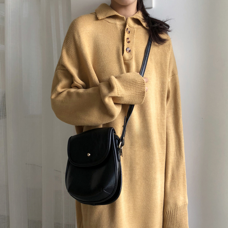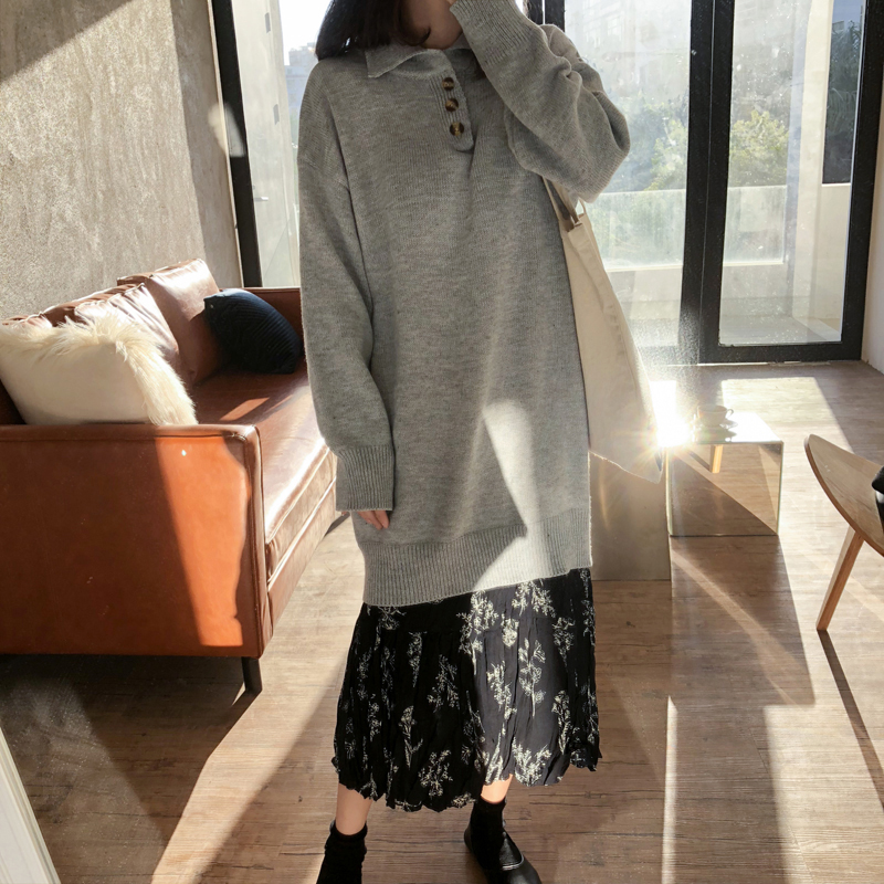 慵懶風中長款POLO領連衣裙女秋冬裝2018新款韓版寬松長袖毛衣裙子