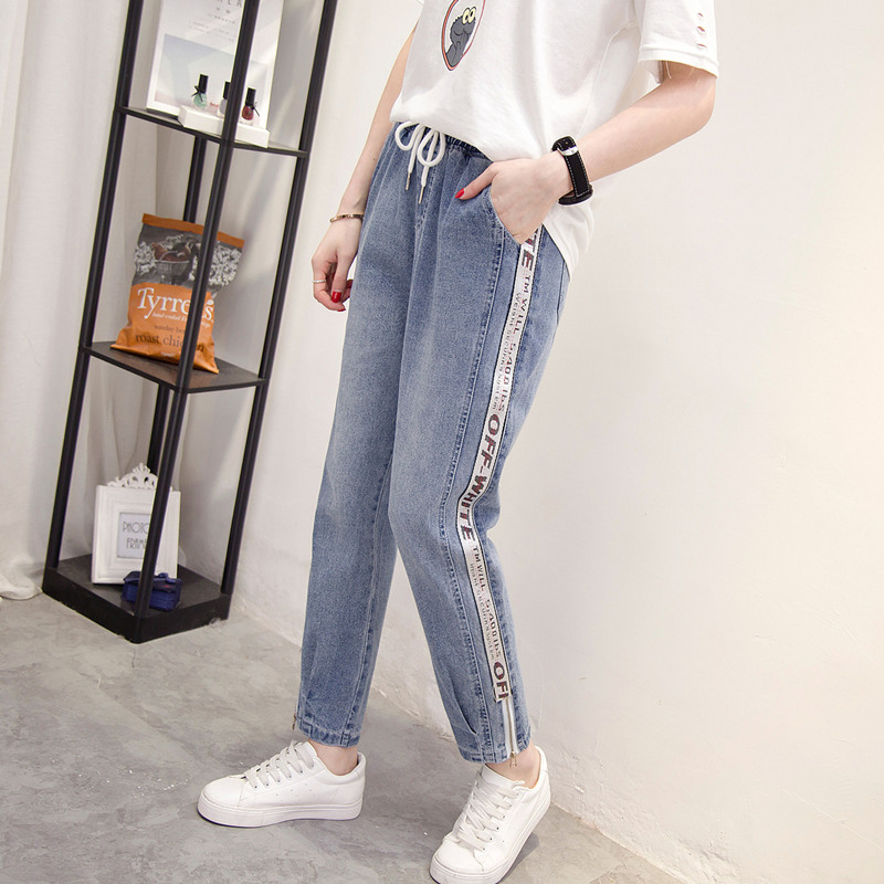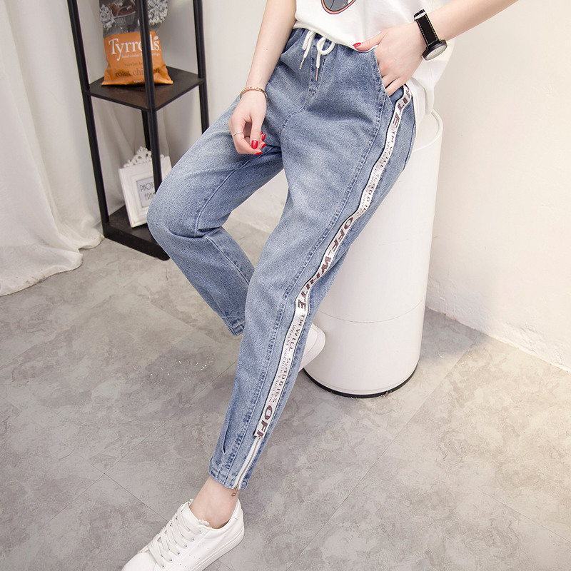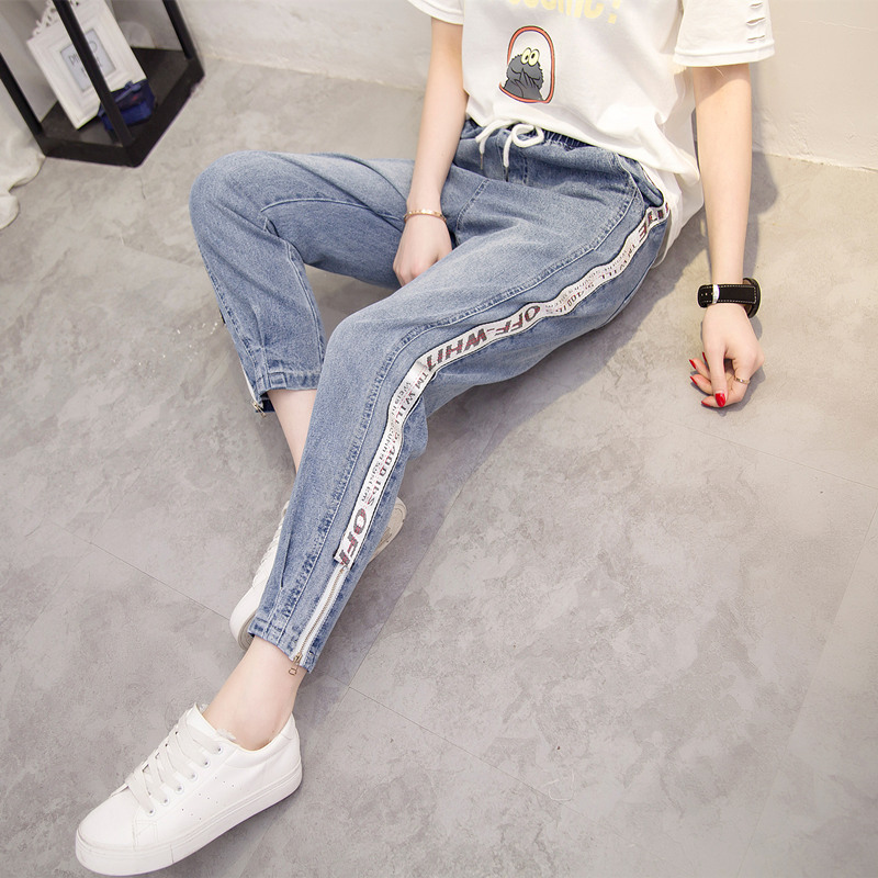 / 牛仔褲女春夏韓版女裝新款休閑顯瘦長褲子百搭系帶個性九分褲