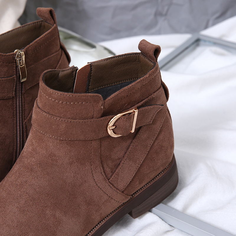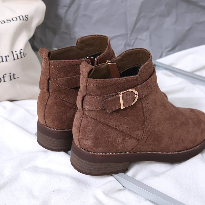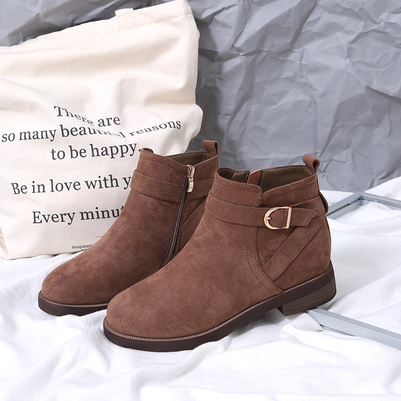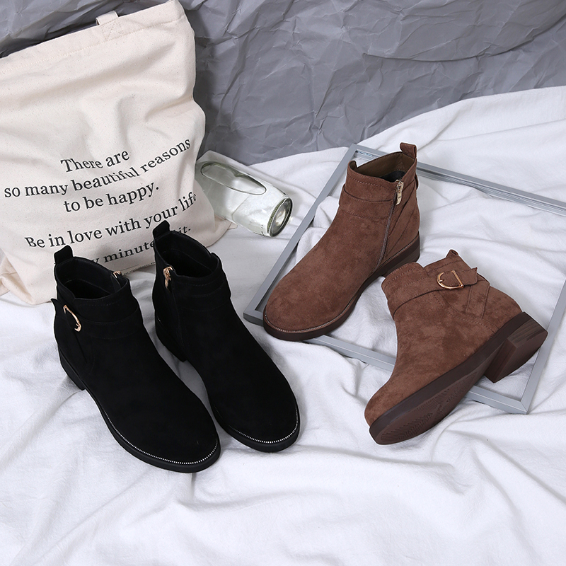 MG小象圓頭馬丁靴冬季2018新款保暖加絨短筒靴子bf風磨砂時尚女靴