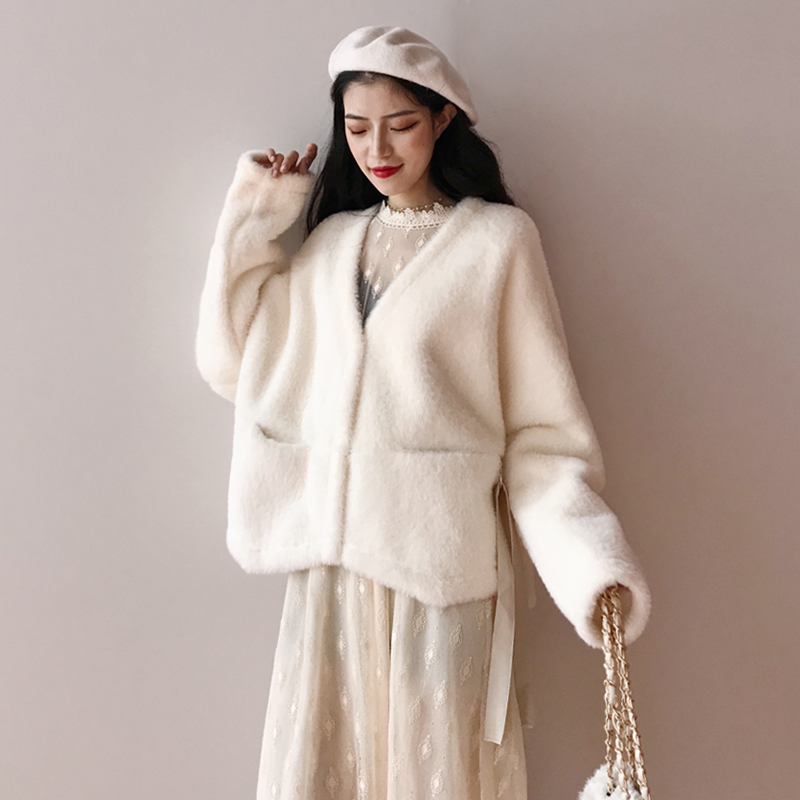 / 港風外套女秋裝2018新款時尚短款V領仿貂絨毛茸茸百搭休閑外套潮