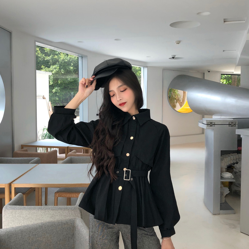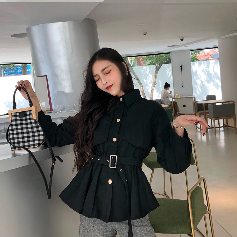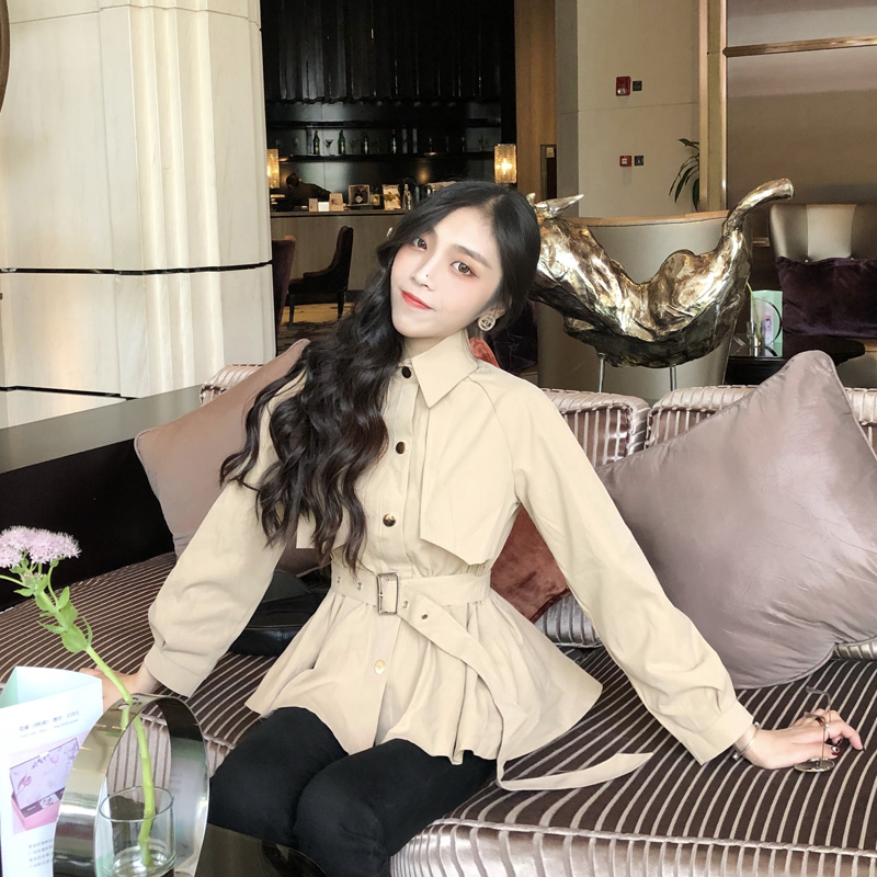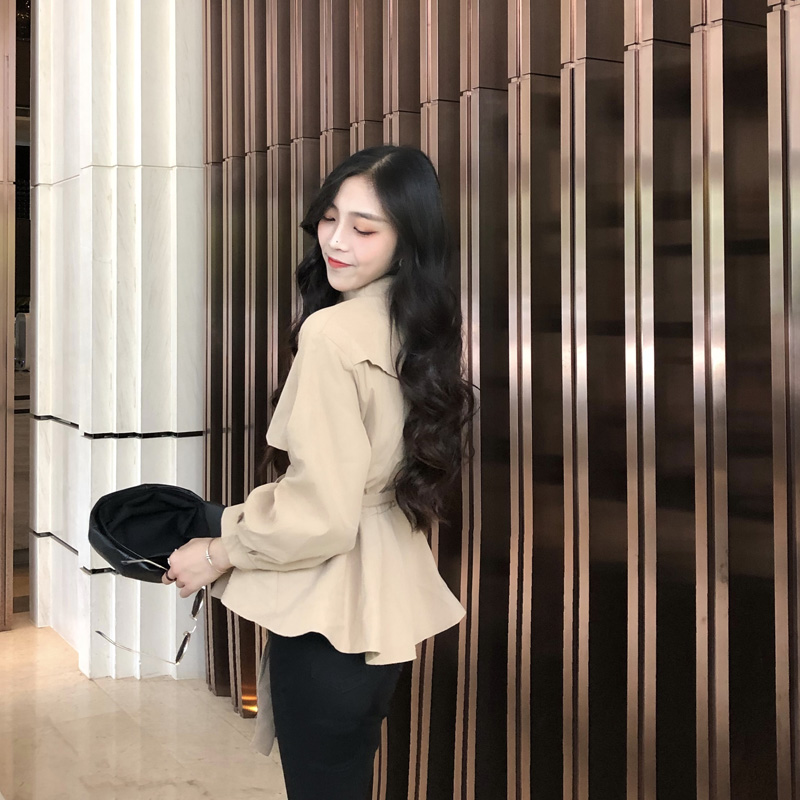 / 秋季新款韓版時尚氣質帥氣薄款外套長袖修身立領短款風衣女配腰帶