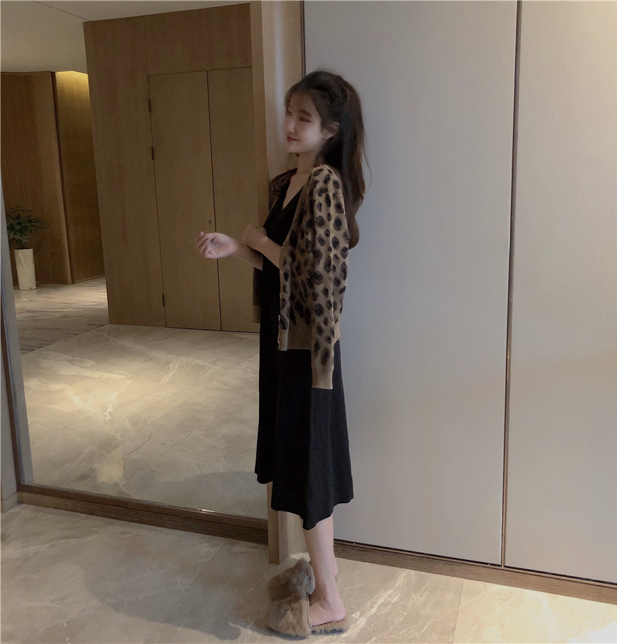 2018秋裝新款韓版時尚外套女百搭chic復古撞色豹紋v領針織開衫潮