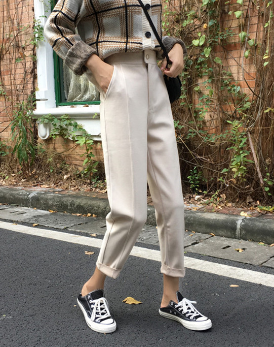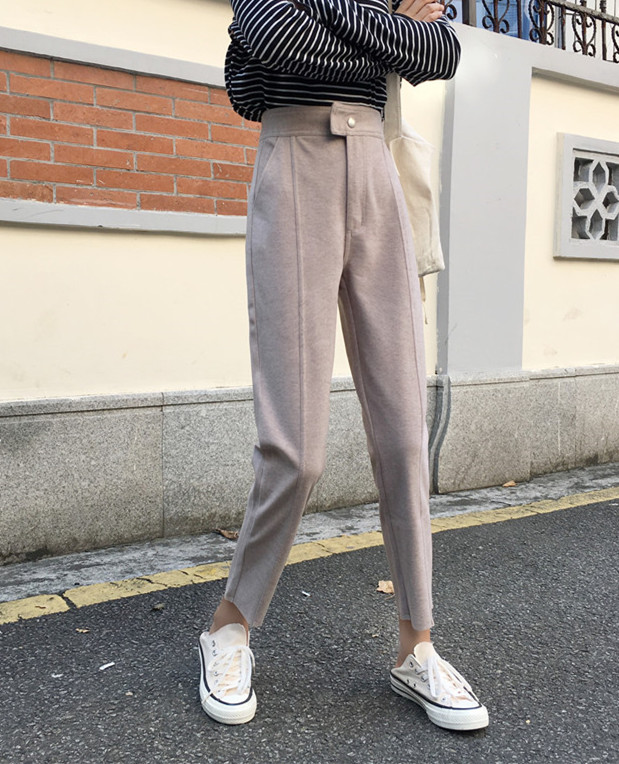 / 2018新款秋冬韓版寬松加厚學生毛呢褲子高腰闊腿褲九分褲休閑褲女