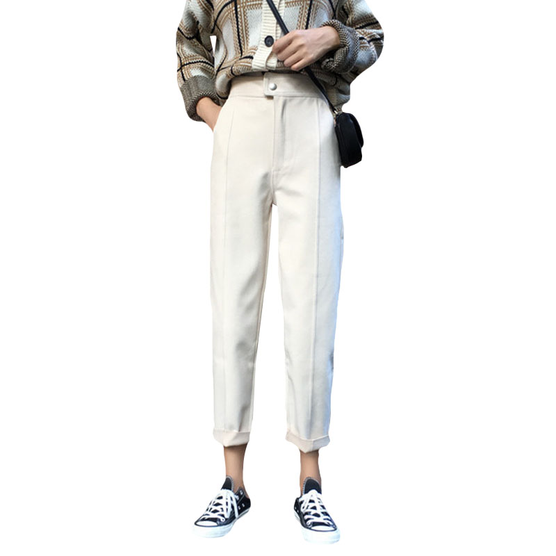 2018新款秋冬韓版寬松加厚學生毛呢褲子高腰闊腿褲九分褲休閑褲女