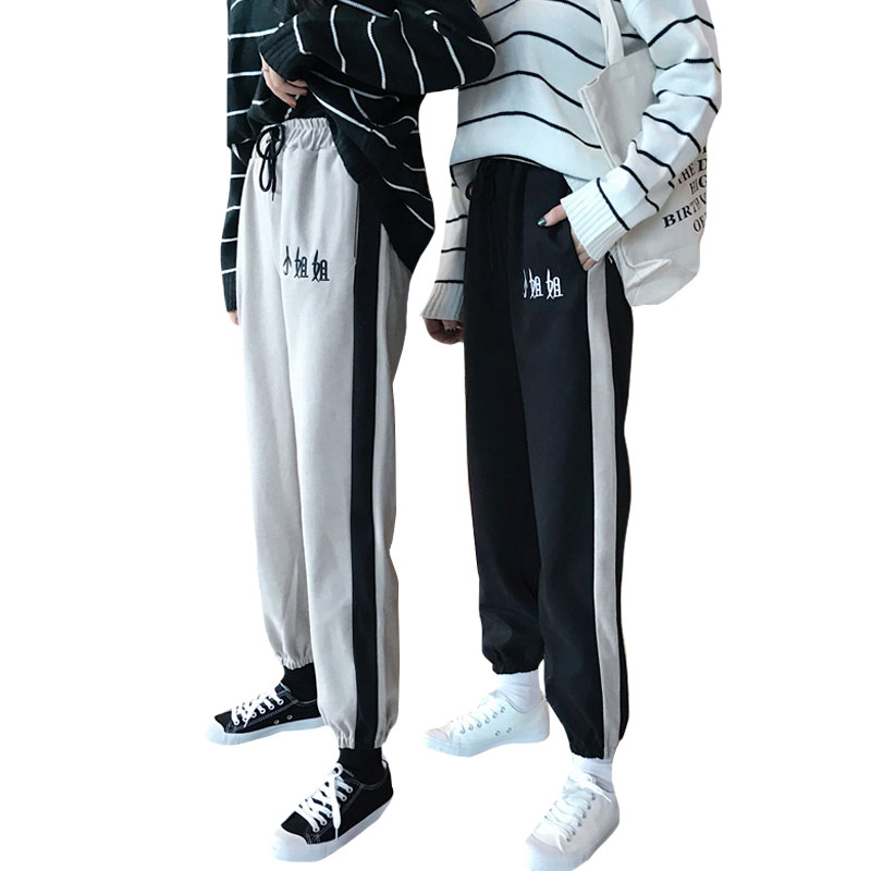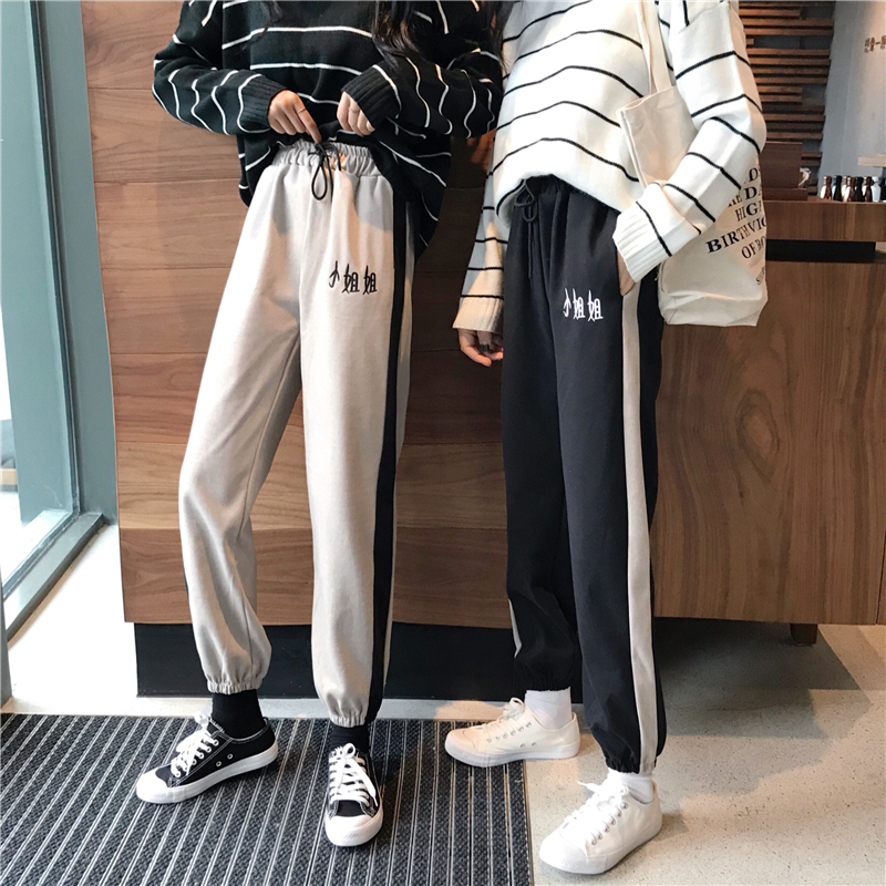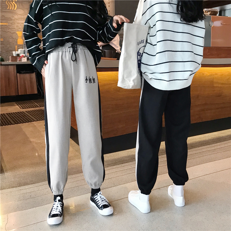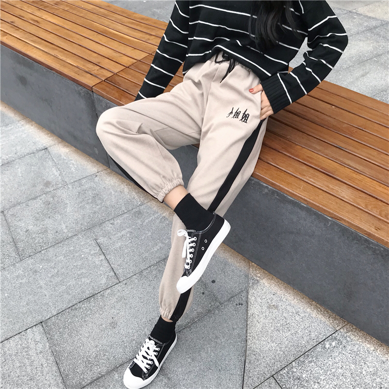 / 秋冬韓版松緊腰加厚呢子哈倫褲寬松休閑褲闊腿褲九分褲學生褲子女