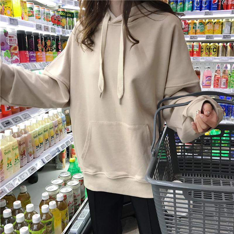 / 韓版網紅同款衛衣女秋2018新款懶惰風寬松加絨寬松連帽長袖上衣潮