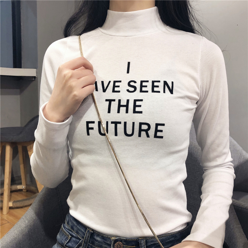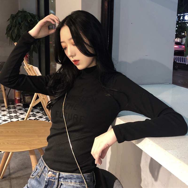 chic半高領字母修身打底衫秋冬裝2018新款韓版氣質顯瘦長袖T恤女