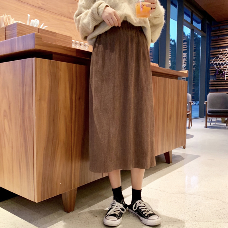 學生復古風高腰顯瘦黑色半身裙子女秋冬裝新款氣質開叉百褶中長裙