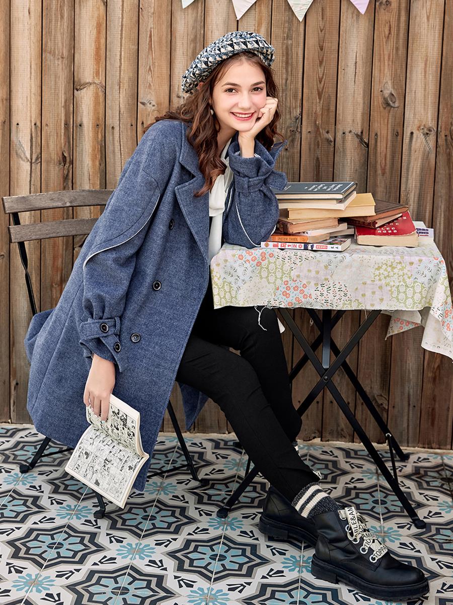 MG小象復古毛呢外套女冬季新款中長款寬松學院風氣質過膝呢子大衣