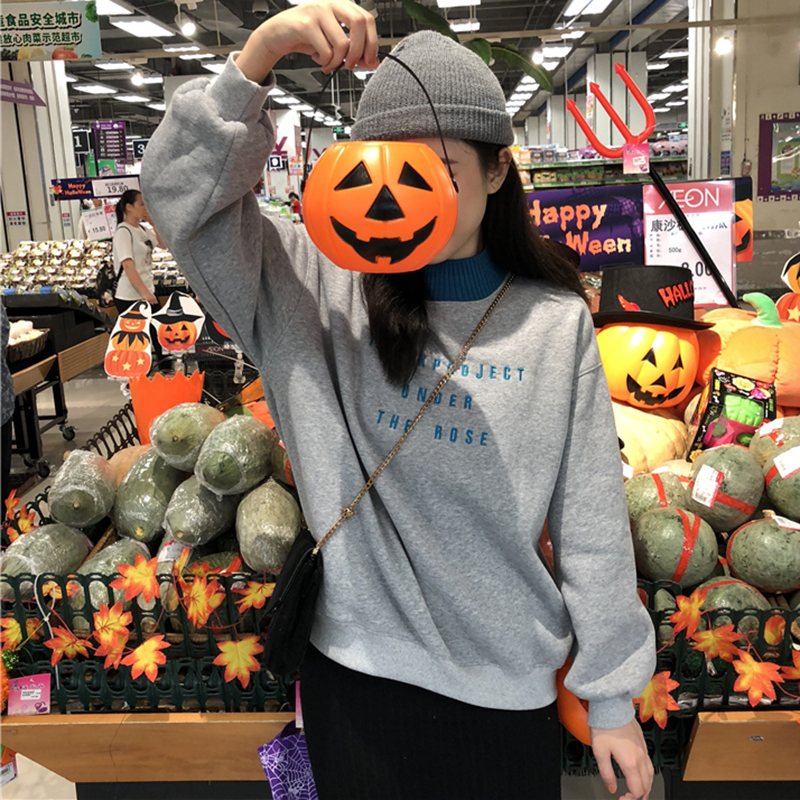 / 秋冬裝2018新款韓版高領字母繡花套頭衛衣學生寬松休閑外套上衣女