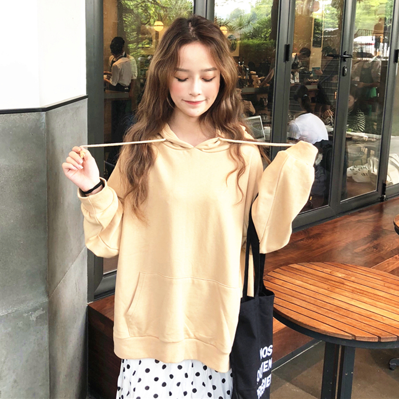 / 純灰色衛衣女秋2018新款長袖藍色韓版慵懶風上衣紫色寬松連帽外套