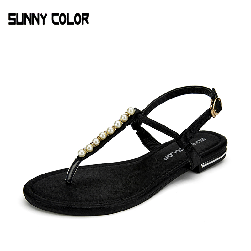 丁字式涼鞋女士夏季平跟夾腳防滑平底百搭休閑羅馬鞋
