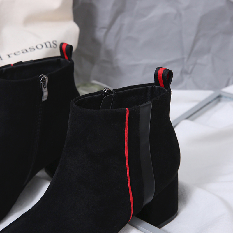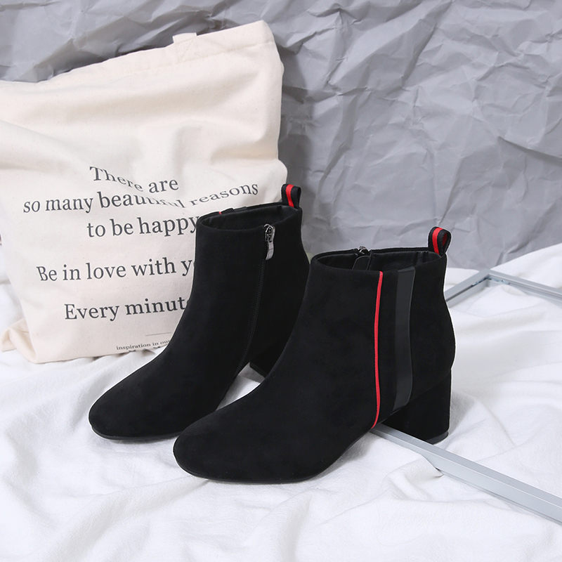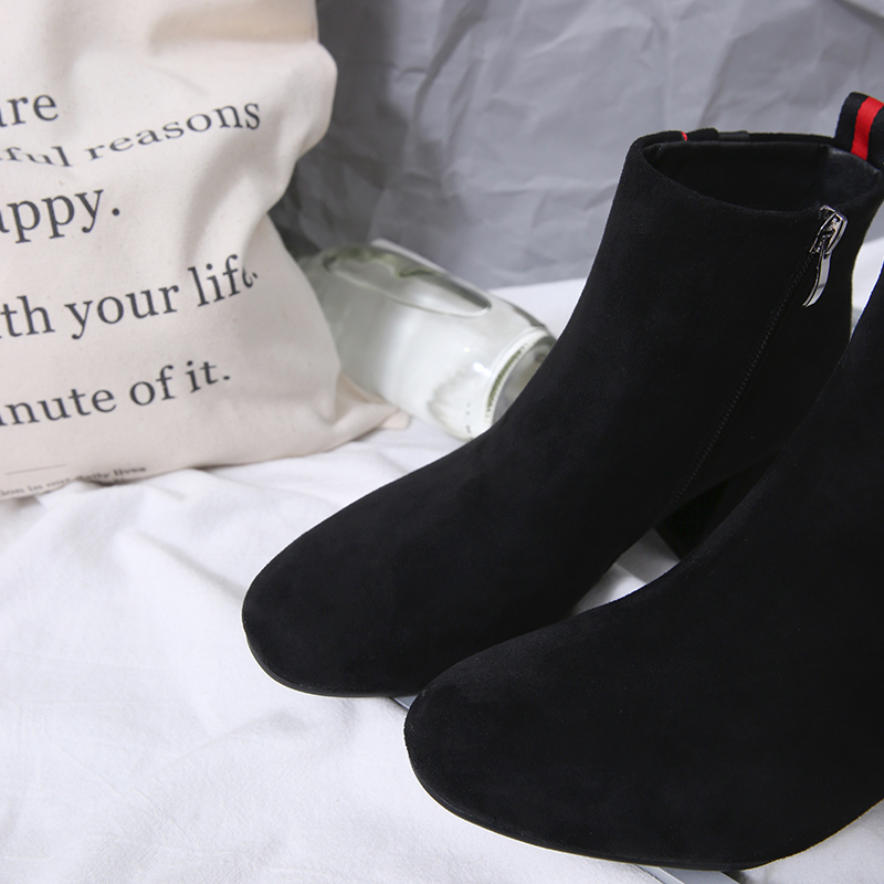 MG小象拼色粗跟高跟鞋女韓版磨砂圓頭馬丁靴2018秋冬新款個性短靴