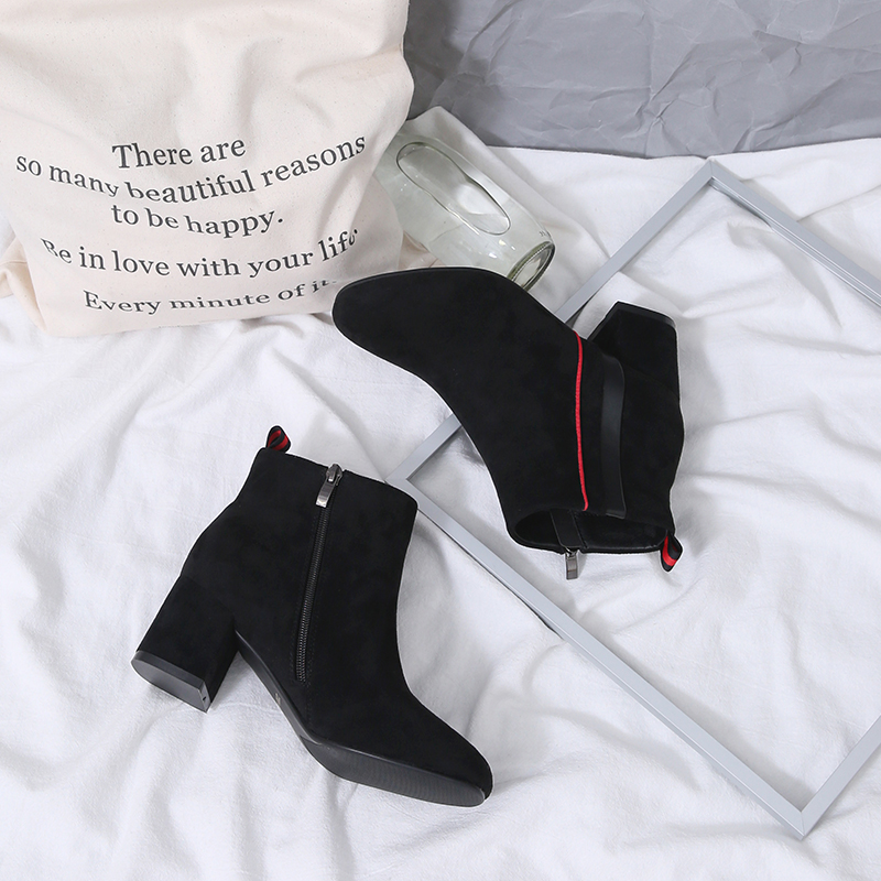 / MG小象拼色粗跟高跟鞋女韓版磨砂圓頭馬丁靴2018秋冬新款個性短靴