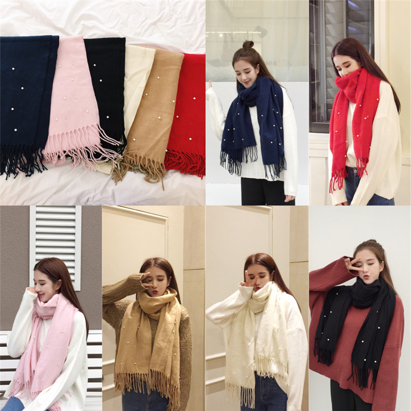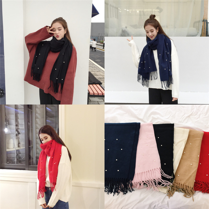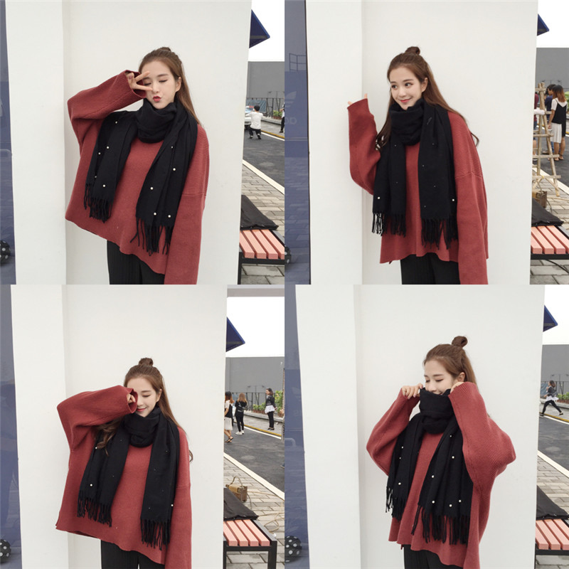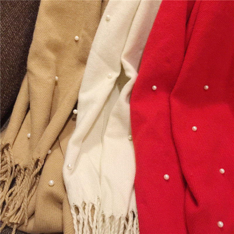 / 冬季新款韓國百搭手工釘珠加長款加厚保暖圍巾大披肩圍脖女