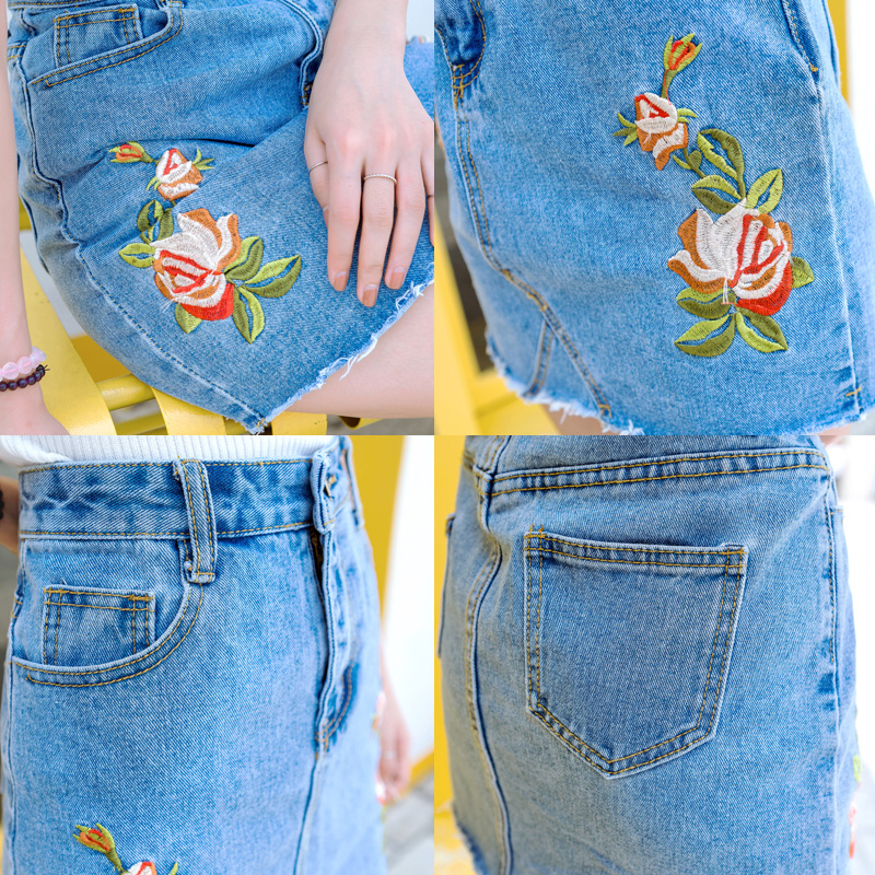 / 牛仔裙夏裝女新款韓版學生刺繡高腰包臀短裙百搭學生半身裙潮