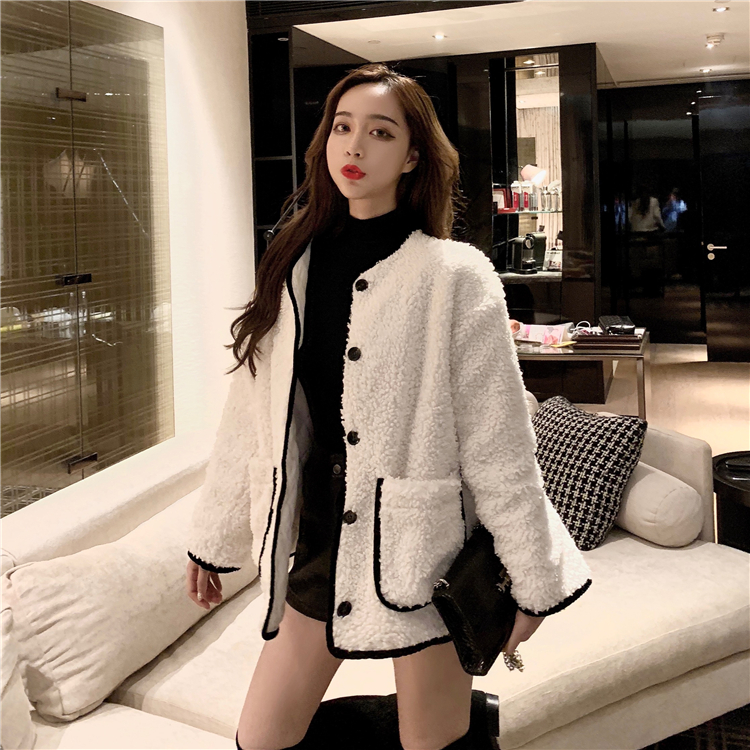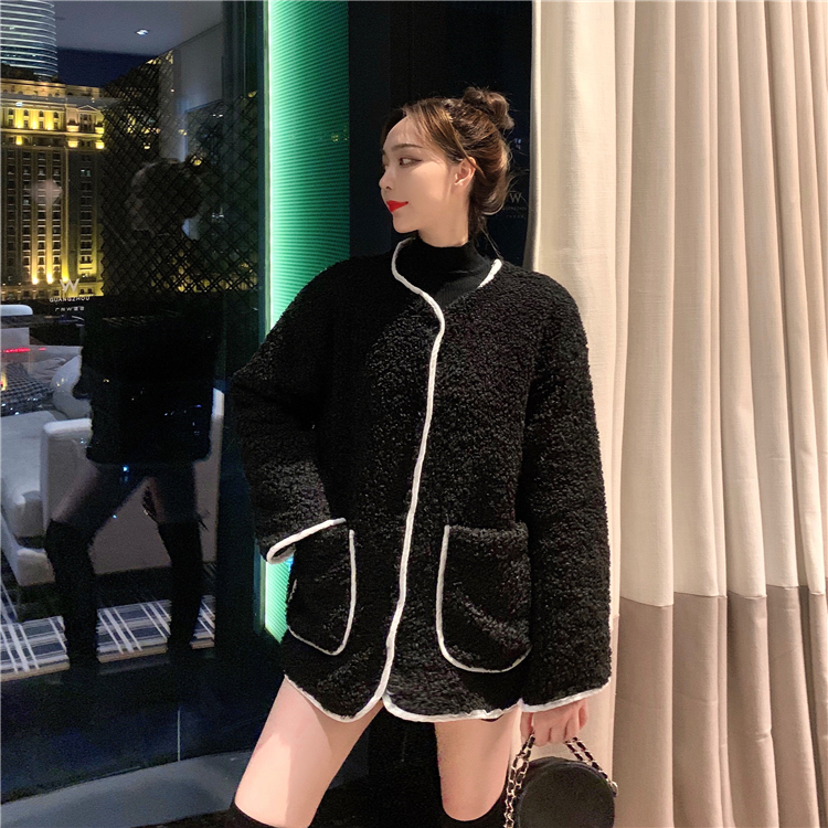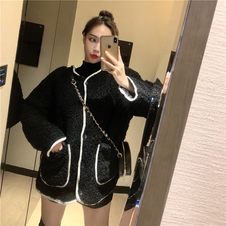 外套女秋冬2018新款韓版百搭款氣質羊羔毛夾棉寬松長袖中長款上衣