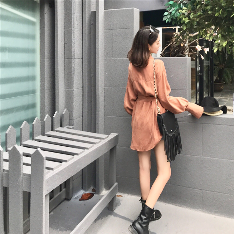復古港味秋裝新款百搭chic中長款小香風女韓版氣質時髦襯衣配腰帶