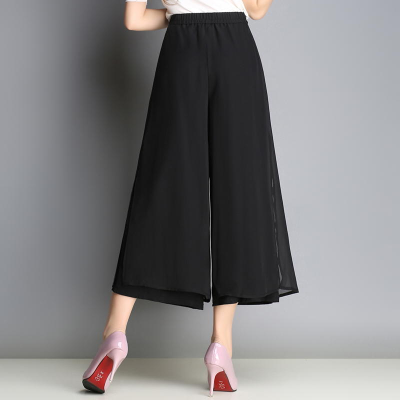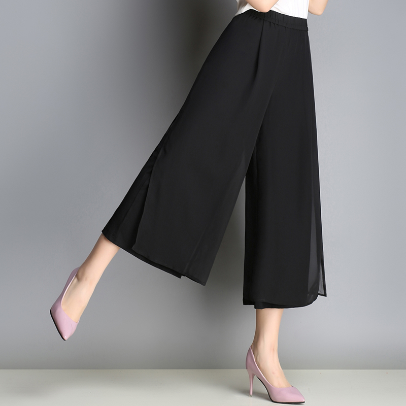 / 雪紡闊腿褲女九分褲高腰春夏季新款韓版秋黑色直筒褲休閑褲子