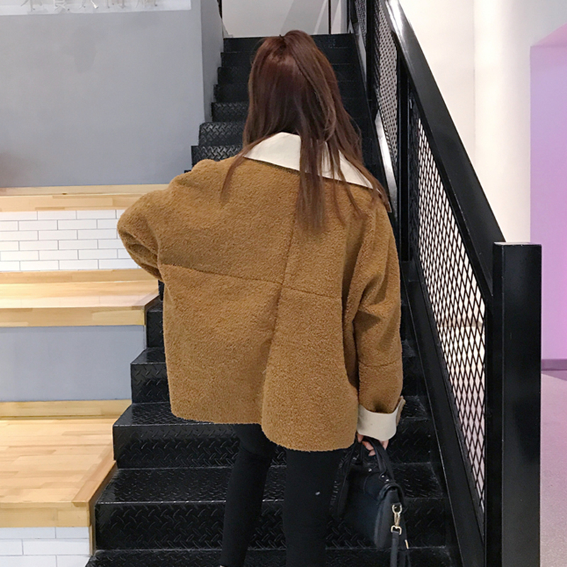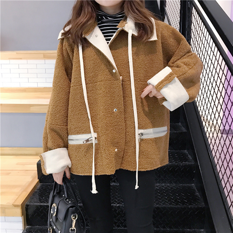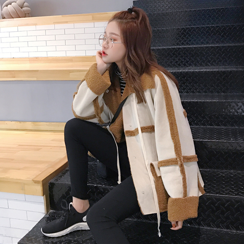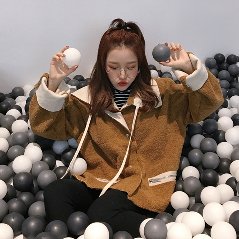 / 秋裝女2018新款港味chic個性兩穿羊羔毛棉衣外套寬松長袖夾克上衣