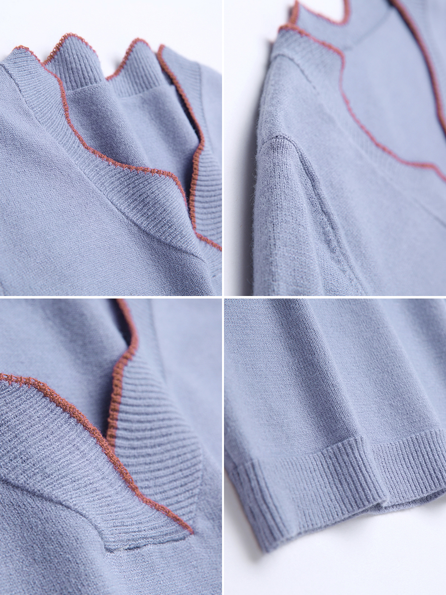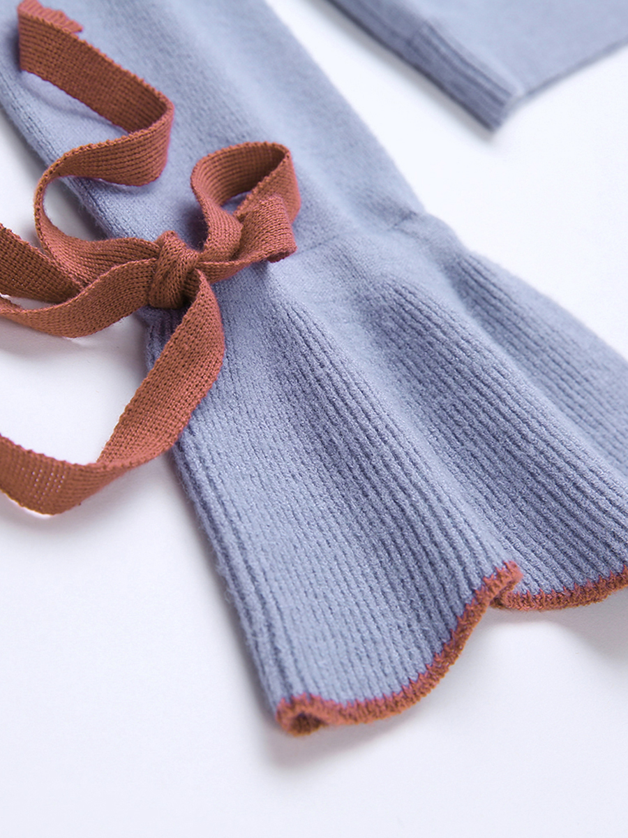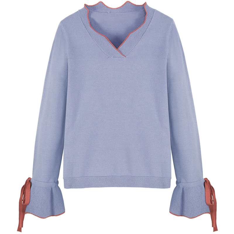 MG小象甜美小清新毛衣女秋冬新款喇叭袖V領針織衫學生小心機上衣