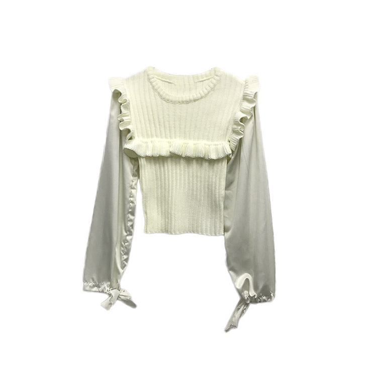 網紅款2018新款秋慵懶風毛衣女長袖拼接荷葉邊圓領假兩件針織衫潮
