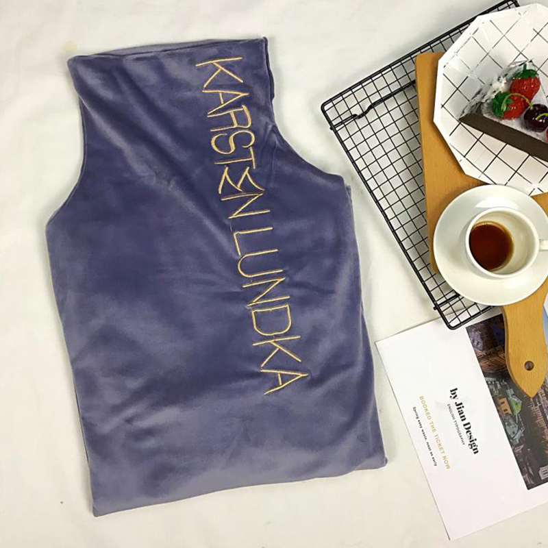 / 時尚字母刺繡打底衫女秋冬裝新款高領修身顯瘦長袖上衣絲絨T恤潮