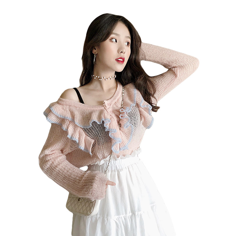 / 女神套裝秋裝2018新款設計感撞色荷葉邊網紅毛衣+仙女蕾絲蛋糕裙