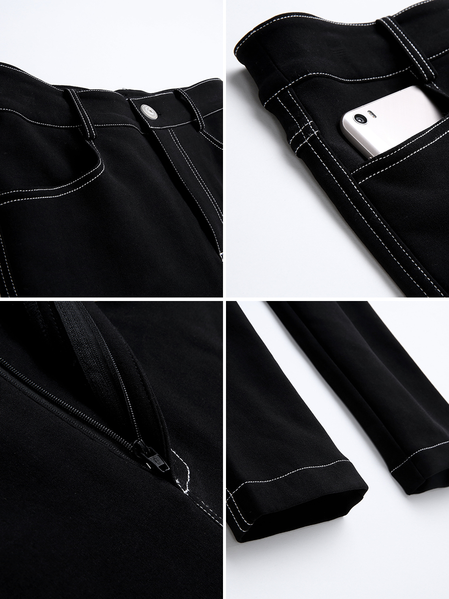 MG小象黑色緊身小腳褲女秋冬時尚高腰休閑鉛筆褲外穿打底九分褲子