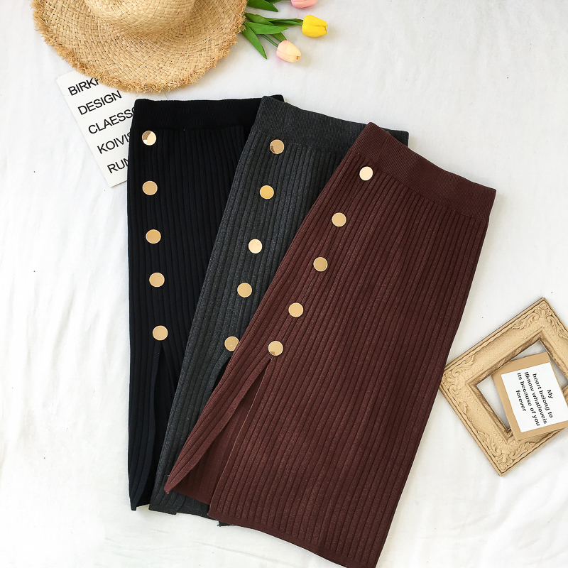 秋裝2018新款女裝港味針織半身裙子開叉一步裙中長款包臀裙女秋冬