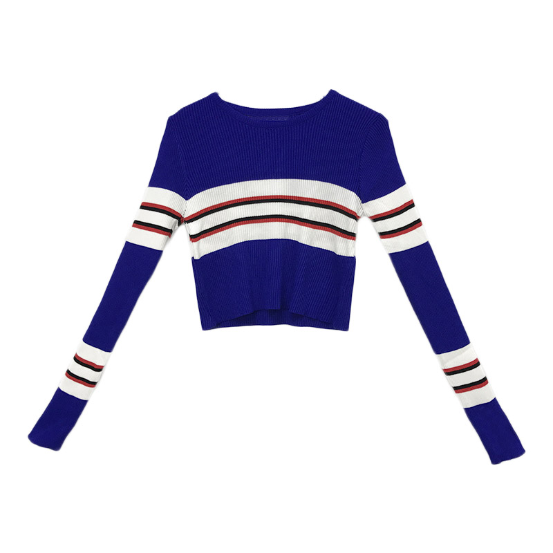 秋裝女2018新款復古小香風條紋短版針織衫長袖T恤韓版氣質上衣潮