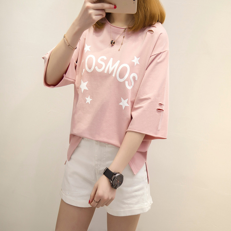 / 女裝春裝新款潮打底衫女短袖t恤女夏寬松上衣女體恤韓版學生
