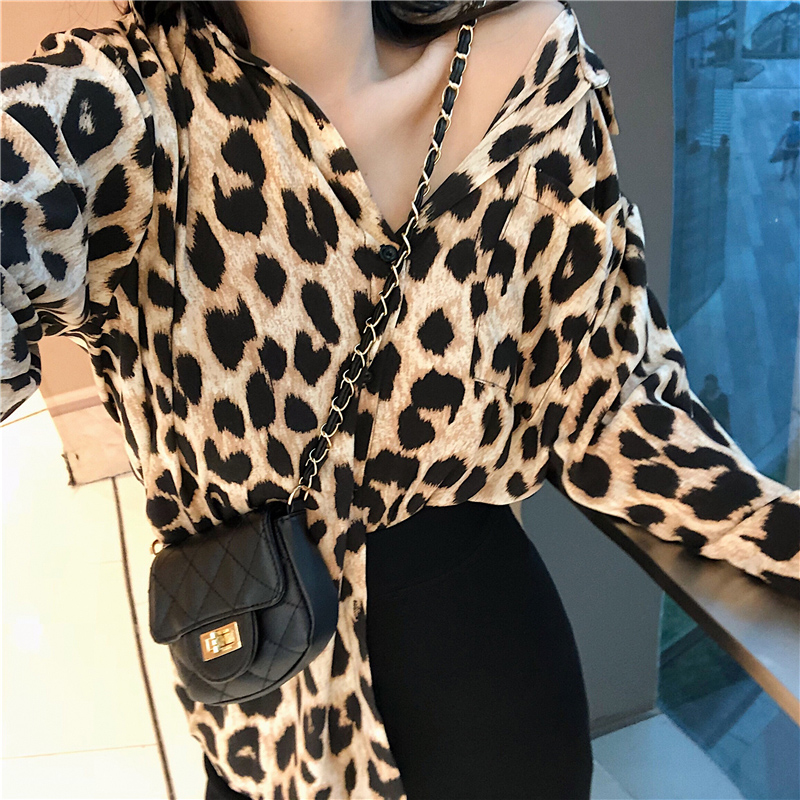 / 港風寬松長袖時尚豹紋襯衫女裝韓版高腰針織開叉半身裙氣質套裝秋