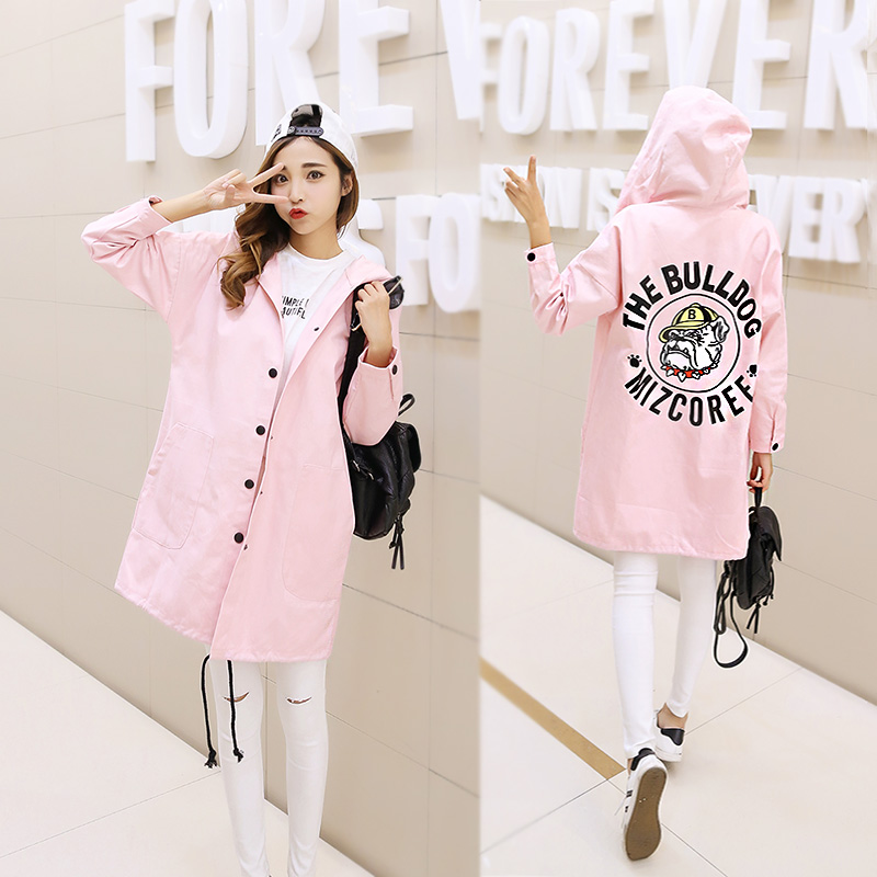 大碼春裝女胖mm外套新款韓版長袖學生bf寬松連帽中長款風衣潮