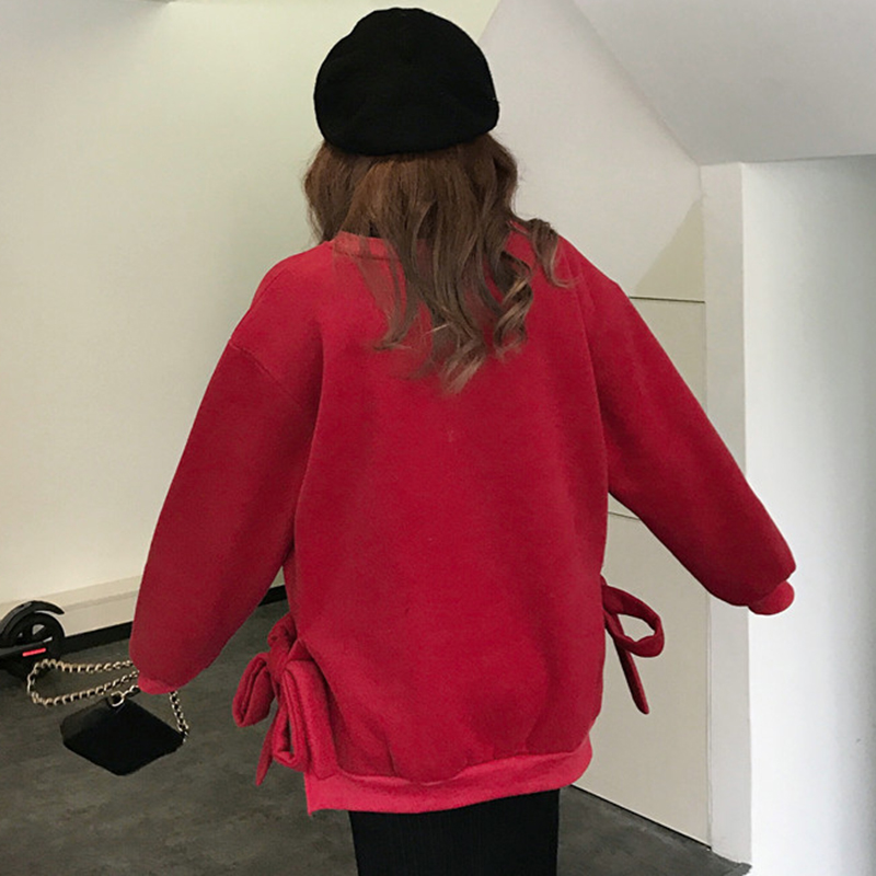 個性綁帶開叉紅色衛衣2018新款女秋冬裝港風慵懶寬松外套休閑上衣