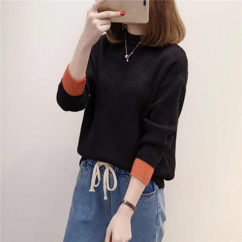 新款冬季女裝潮上衣打底衫針織衫套頭長袖韓版寬松外套毛衣女
