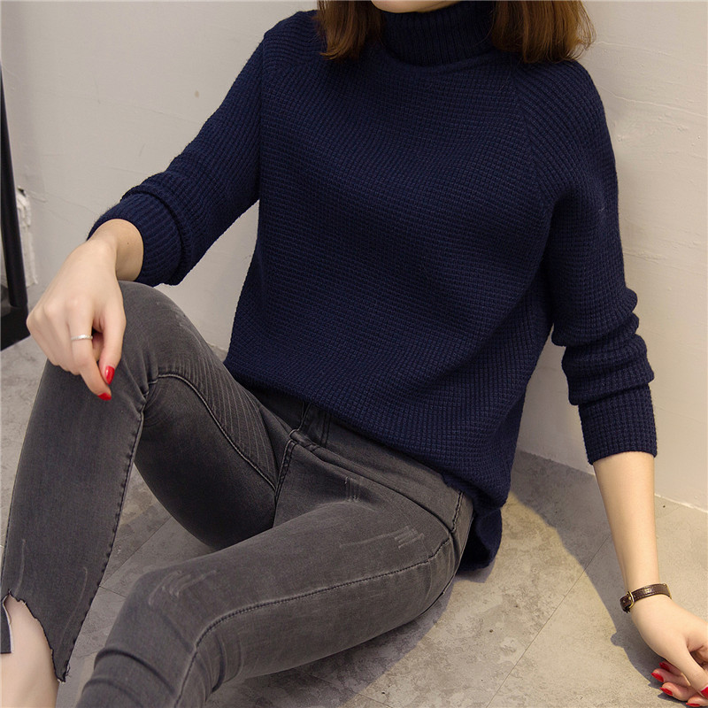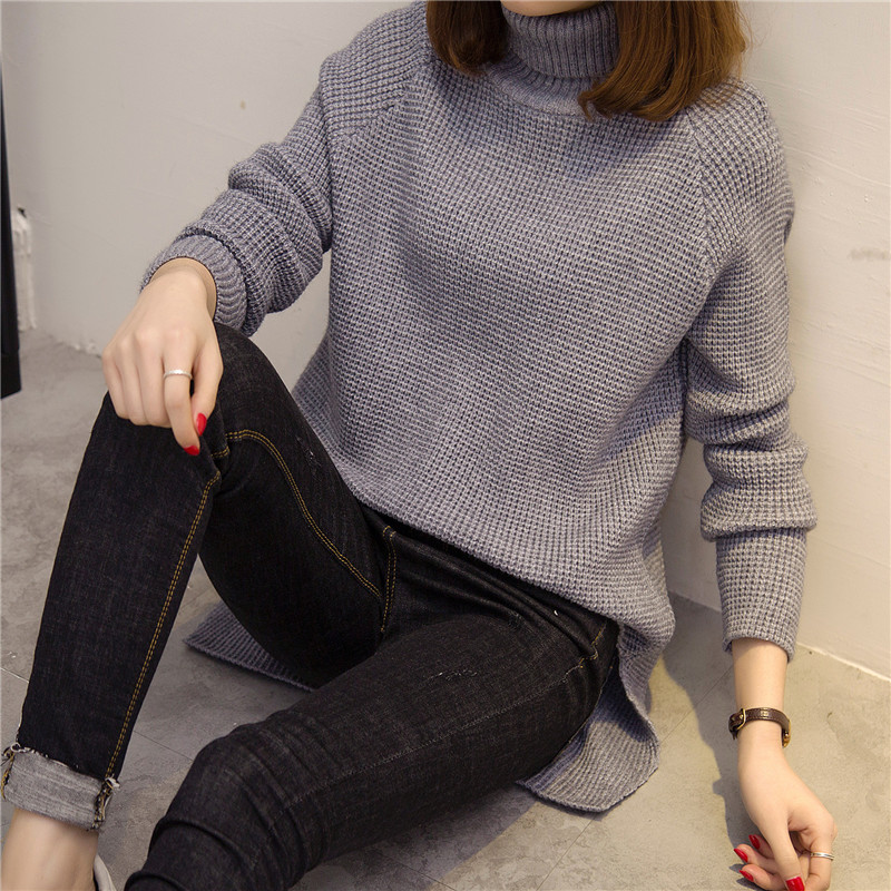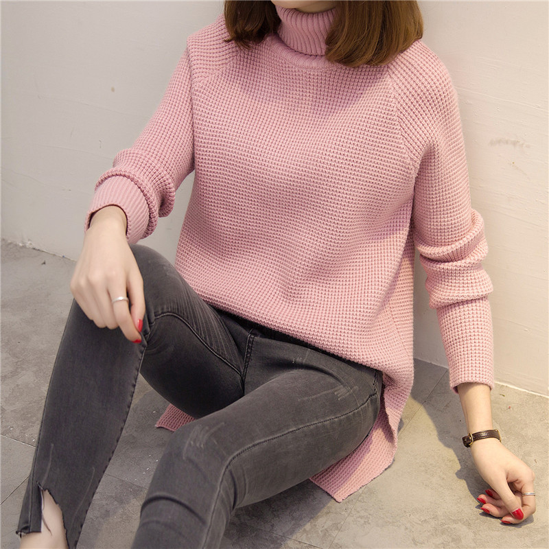 打底衫女長袖寬松外套高領針織衫套頭毛衣女秋冬季女裝新款潮