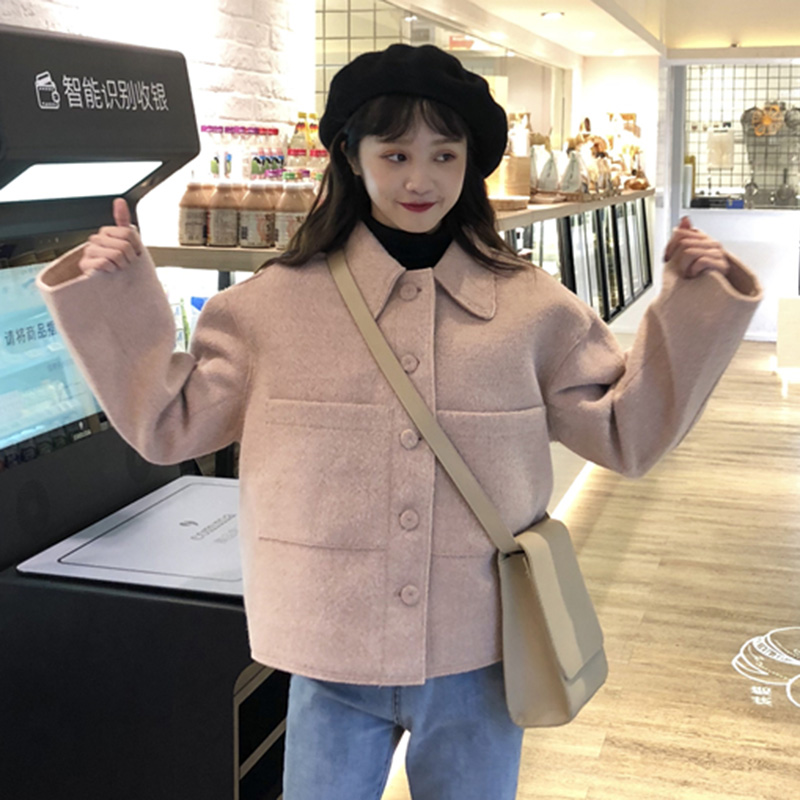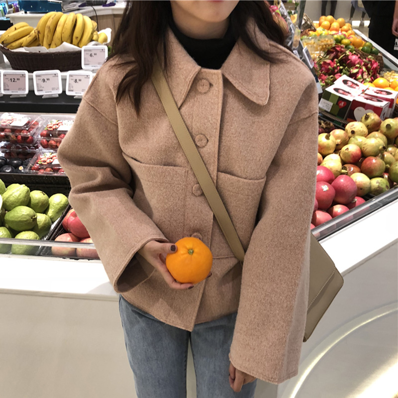 / 簡約純色毛呢外套秋冬女裝新款流行呢子大衣學生寬松長袖開衫上衣