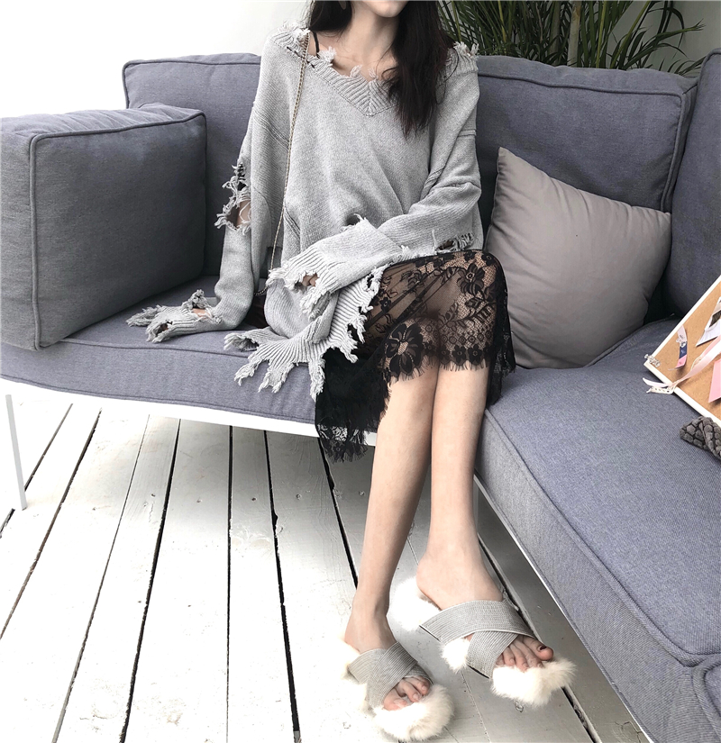 這個毛衣一定要搭配我們這期的蕾絲吊帶打底一起穿