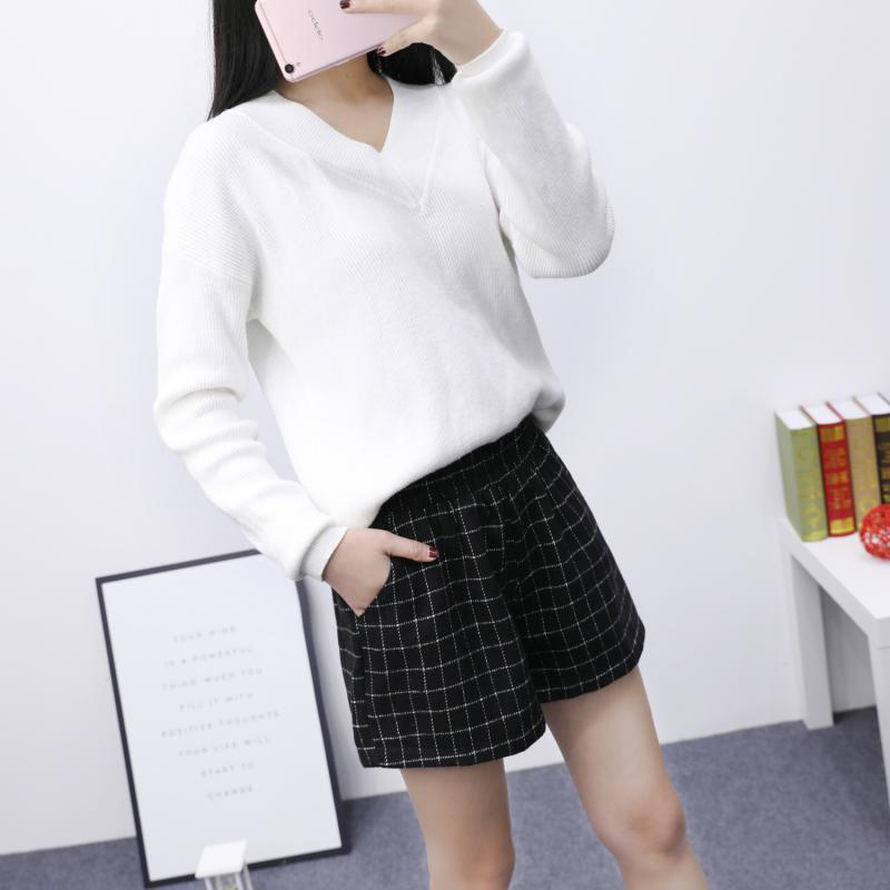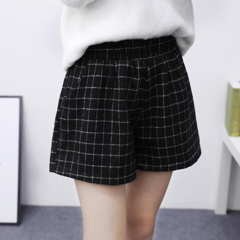 / 女裝秋冬2018新款韓版寬松高腰毛呢格子闊腿短褲學生休閑靴褲子潮