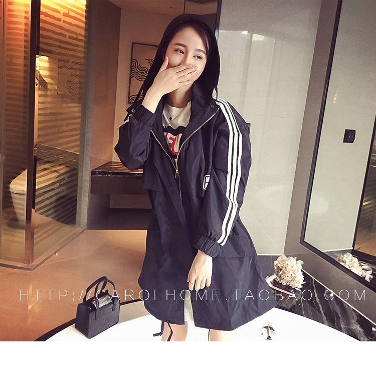 2017秋季韓版寬松原宿風棒球服外套學生中長款寬松工裝連帽風衣女