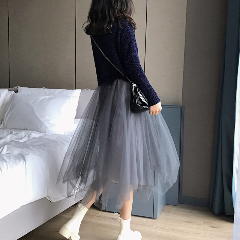 / 毛衣配裙子兩件套女秋裝新款不規則慵懶針織衫高腰顯瘦網紗半身裙