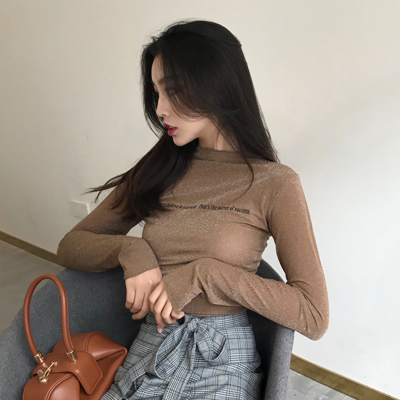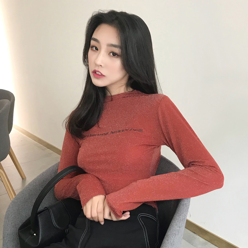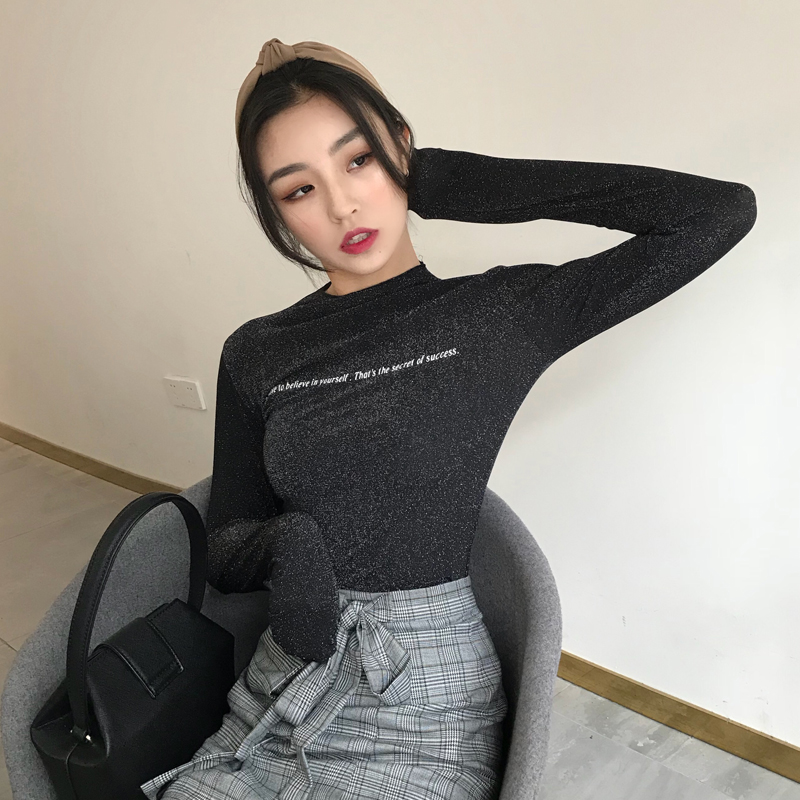 修身字母印花顯瘦時尚百搭新款韓版秋季女港風復古打底T恤上衣潮