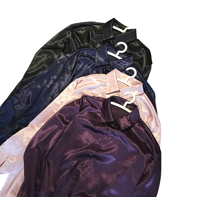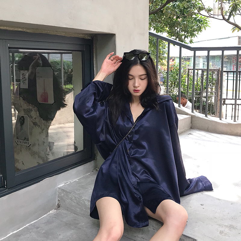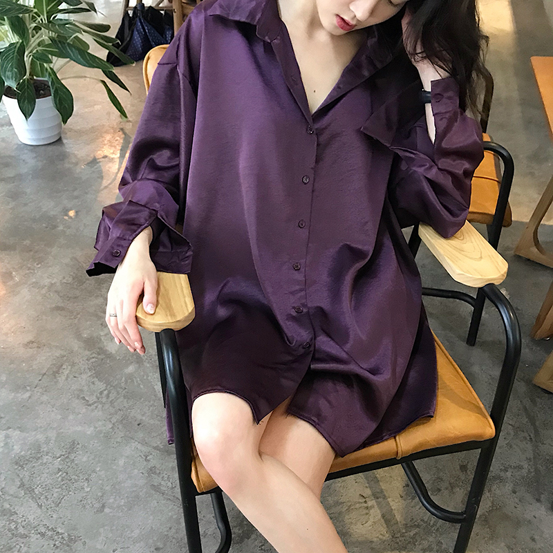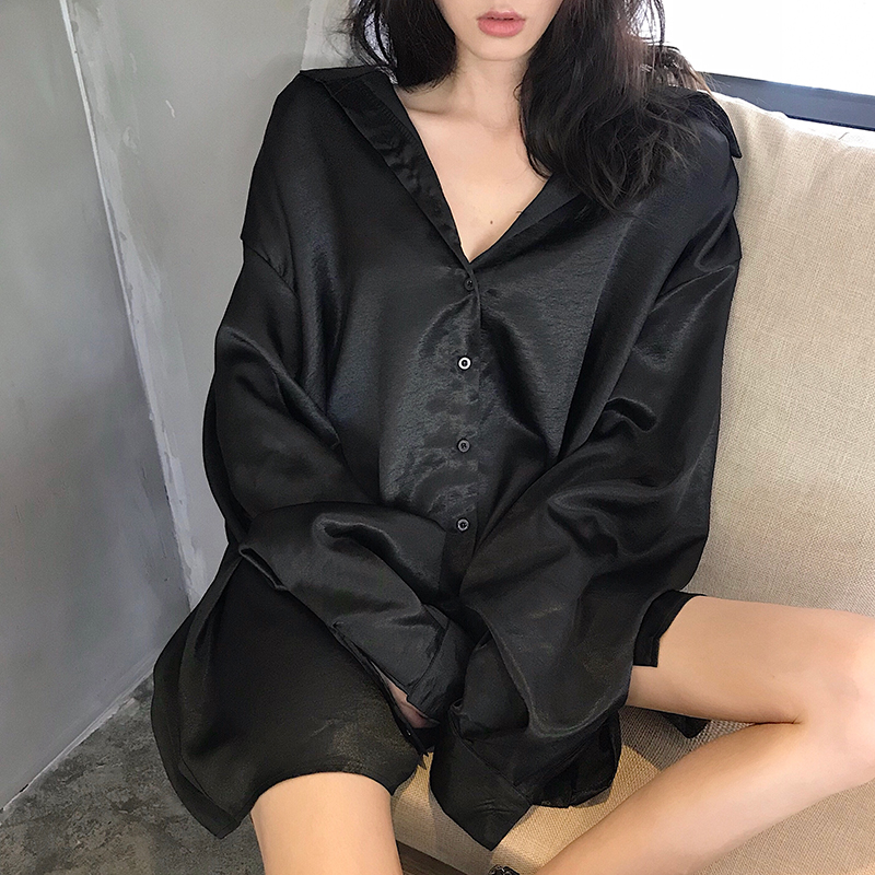 / 慵懶風秋裝新款韓版百搭時尚上衣純色復古chic氣質長袖寬松BF襯衫