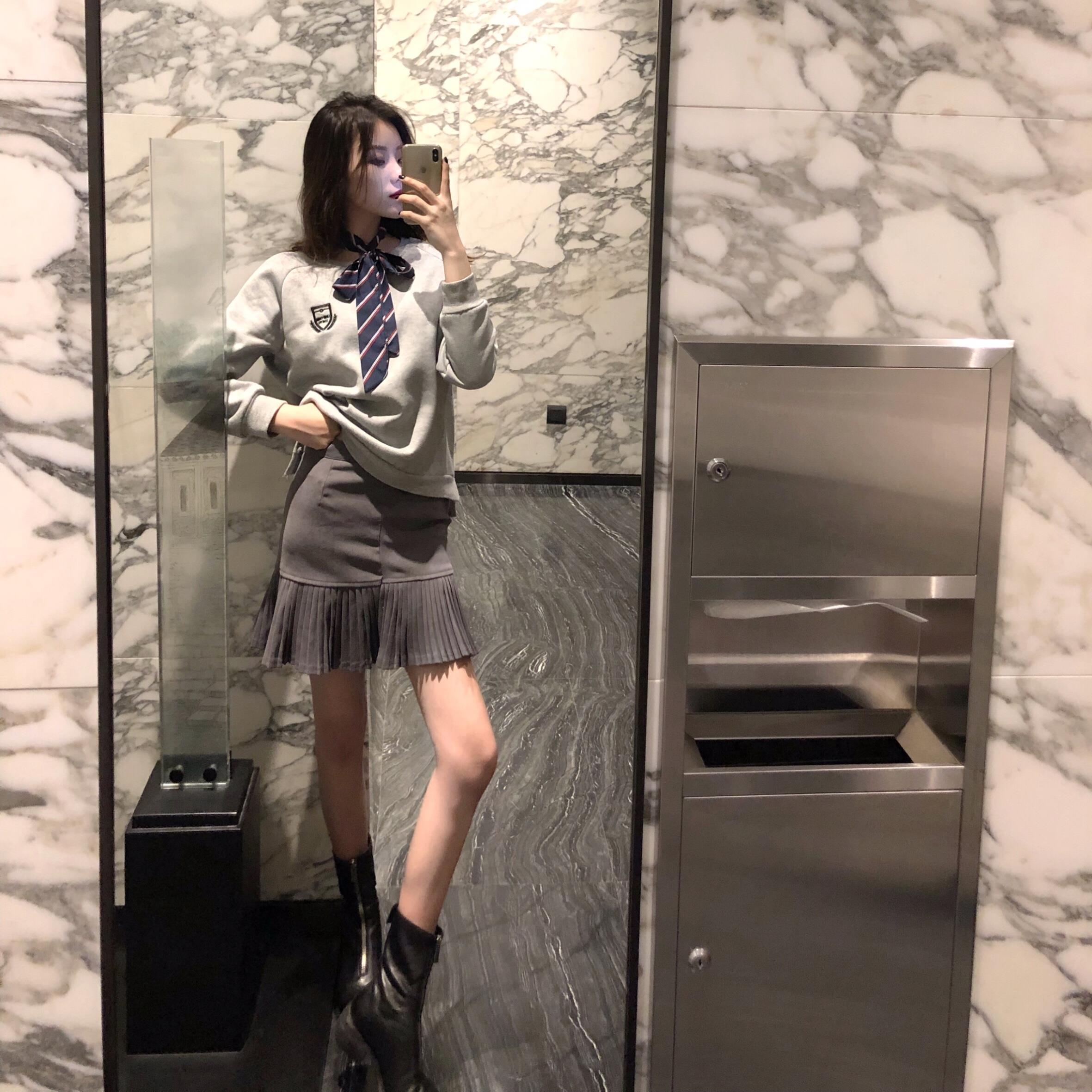 / 乖乖少女感學院風加絨衛衣甜美減齡百褶裙半身裙時尚套裝兩件套潮